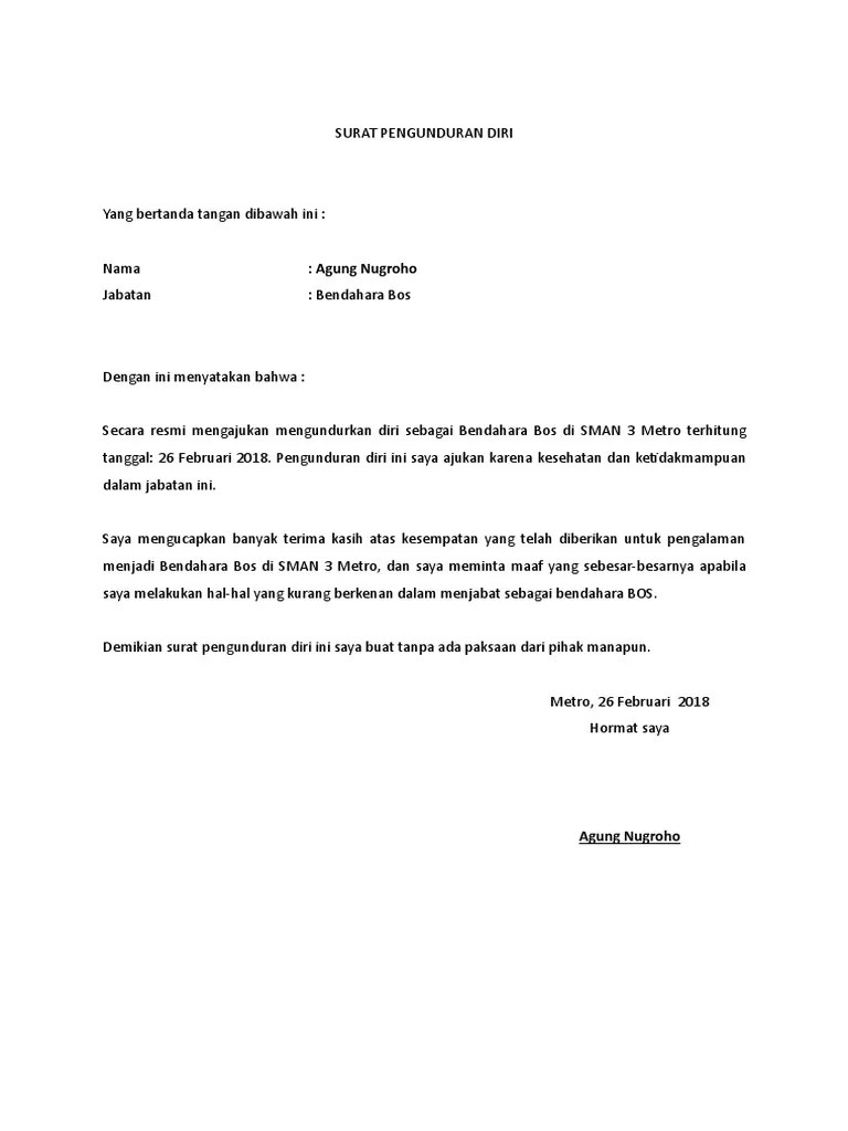 Demikian surat pengunduran diri ini saya buat dengan penuh.